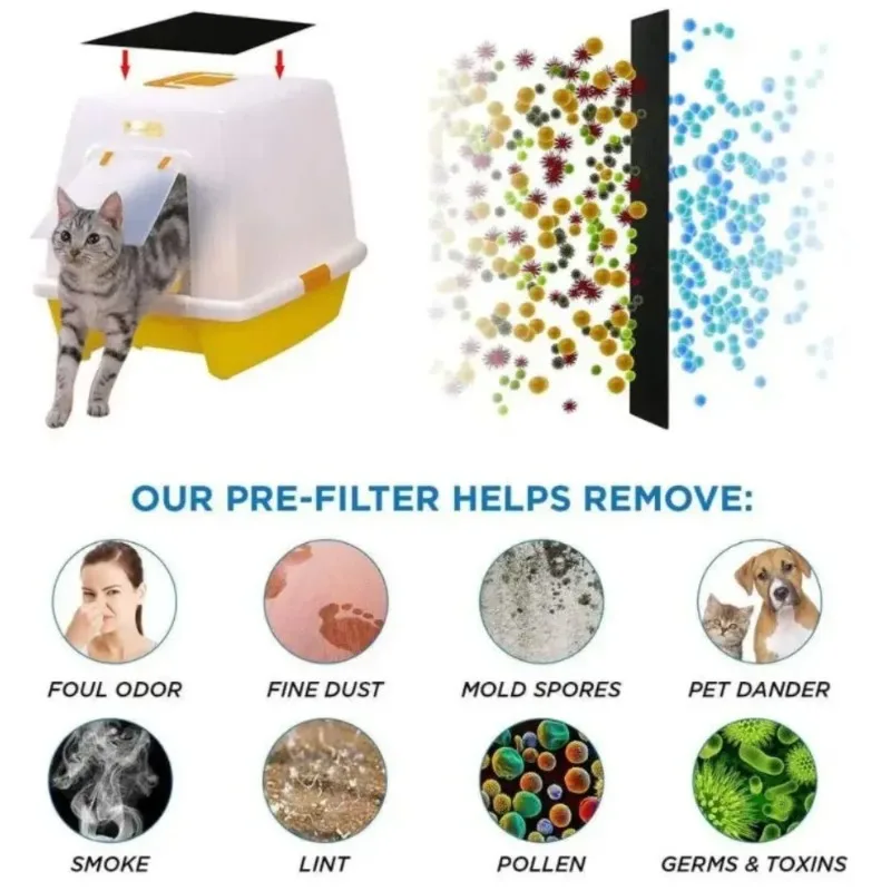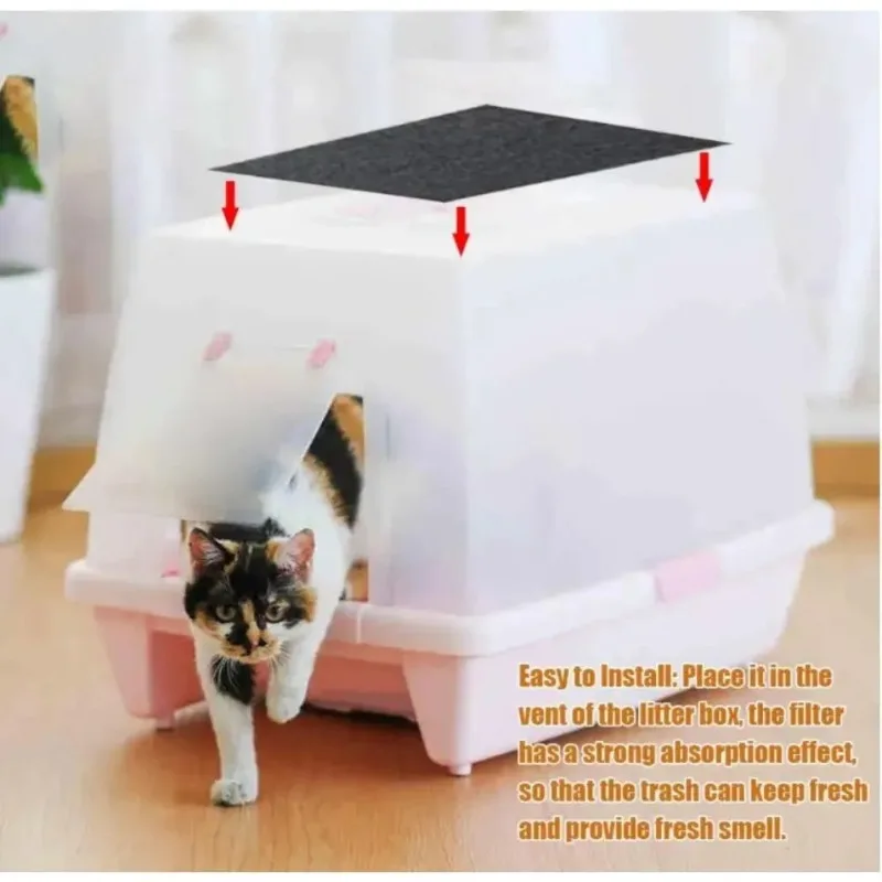 It is easy to install: Place it in the opening of the litter box, the filter has a strong absorption effect, so that the garbage can keep fresh and fresh smell.