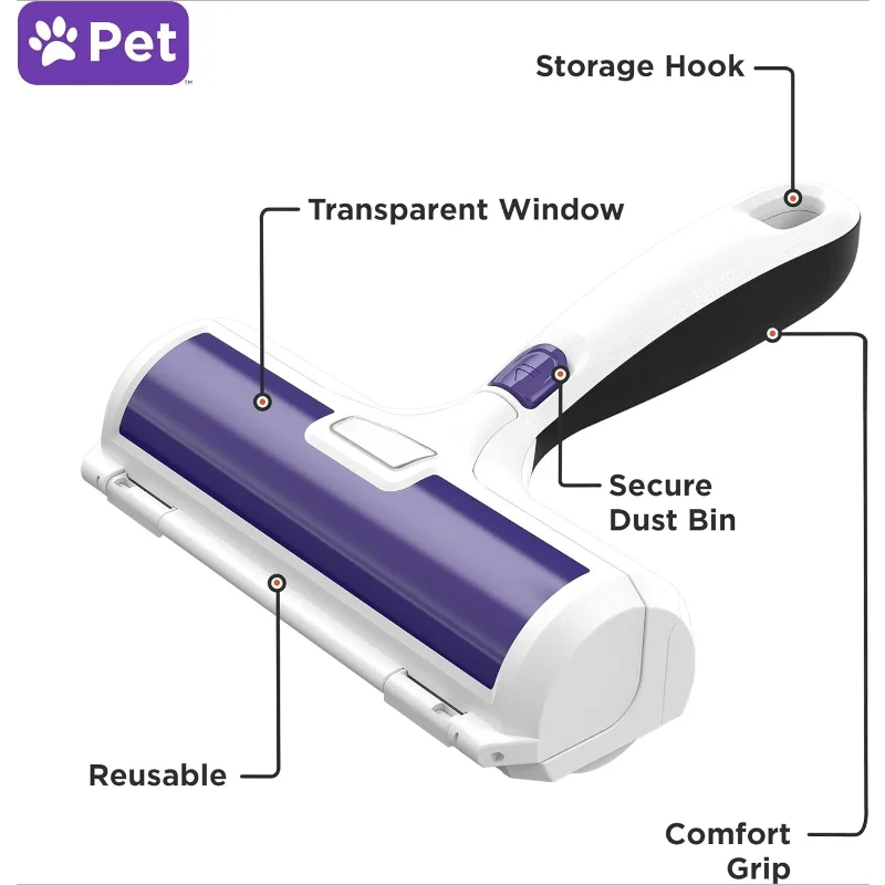 Cleaning up after your furry loved ones is a cinch with the BLACK+DECKER® Pet Hair Remover. No sticky tape needed. The Pet Hair Remover is reusable and sturdy. Track and remove dog hair and cat hair from sofas, couches, beds, carpets, car seats, and more with short, rapid push-pull motions. Its transparent window shows when it’s full and the spring button lets you easily open the dust bin to empty it. The rubber handle gives you a comfortable grip. Keep it home or in the car. Wherever your pet goes, the Pet Hair Remover is your trusty companion for cleaning up pet hair.